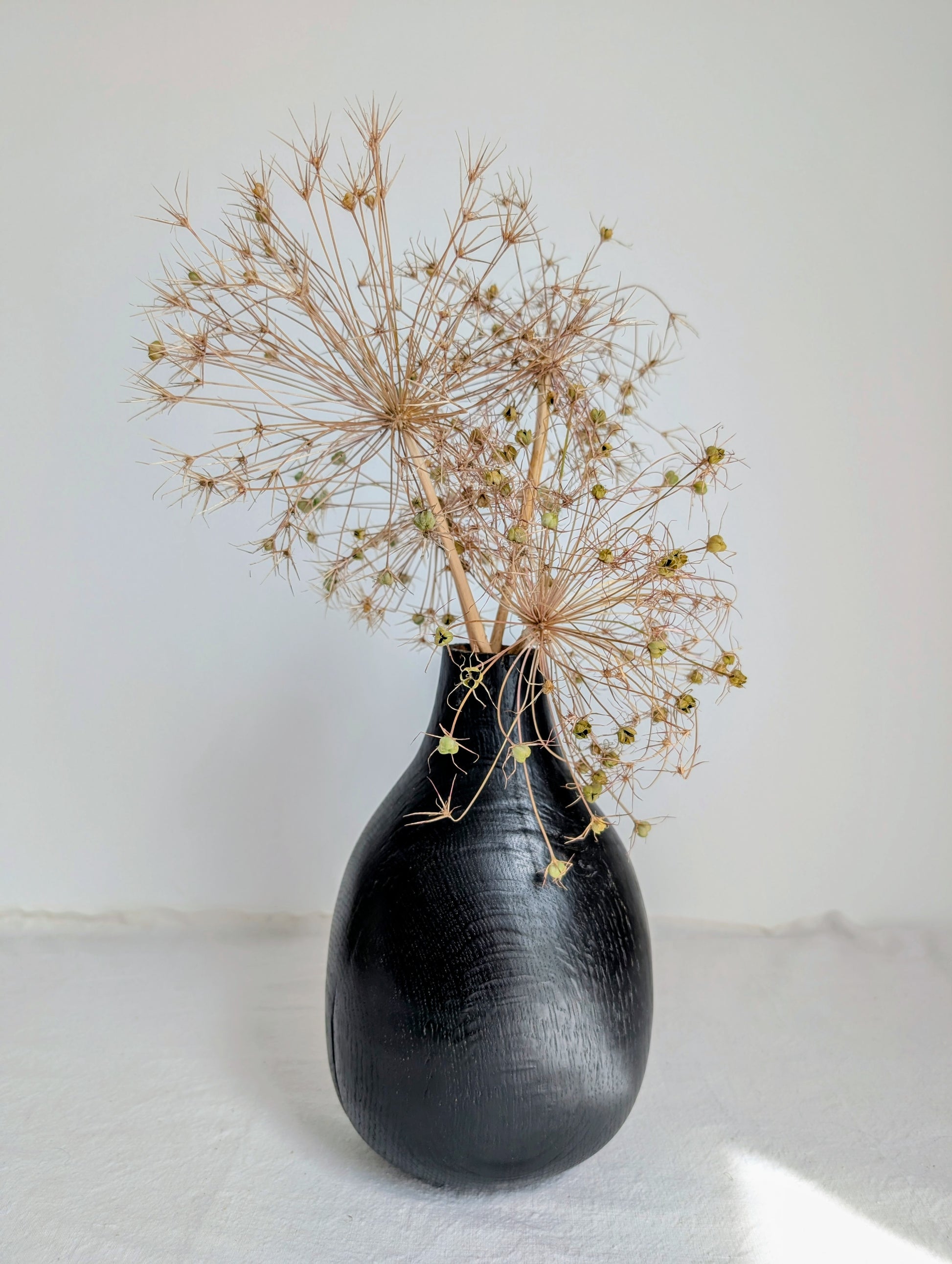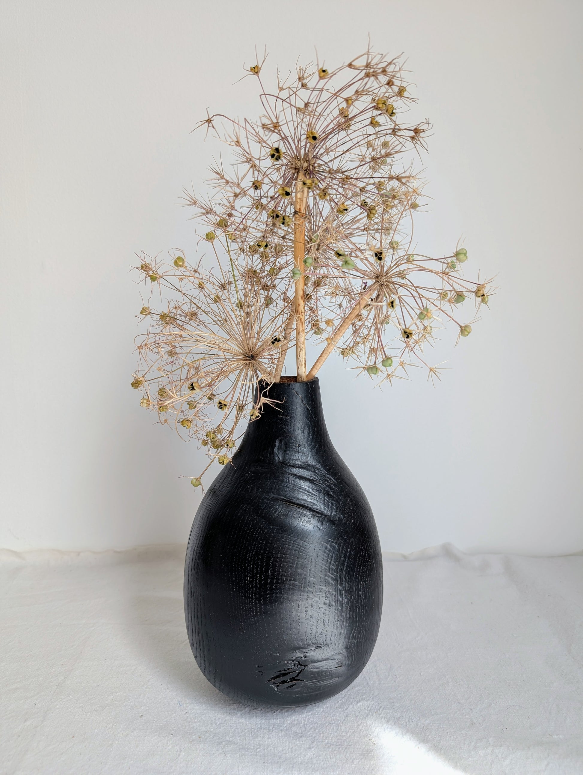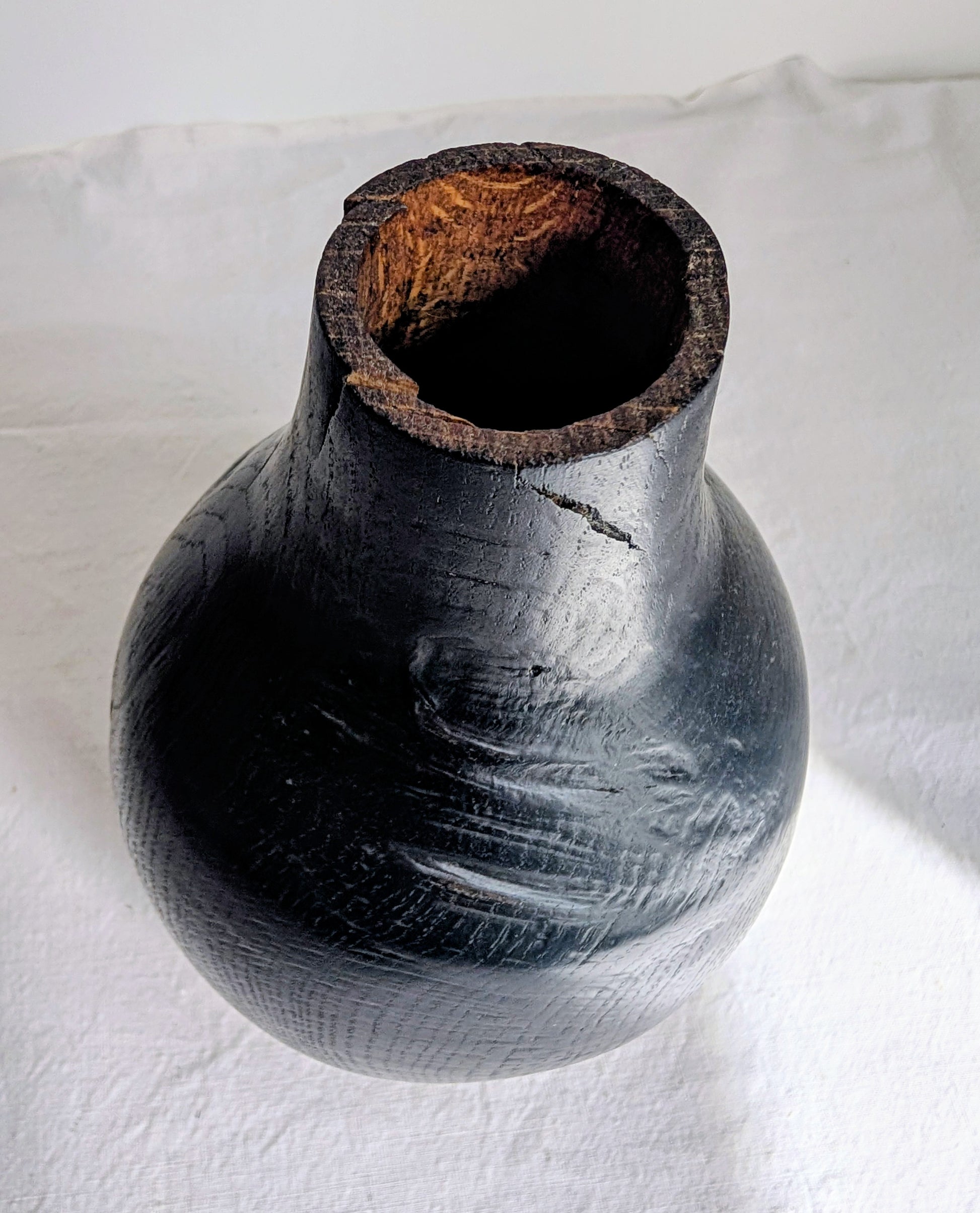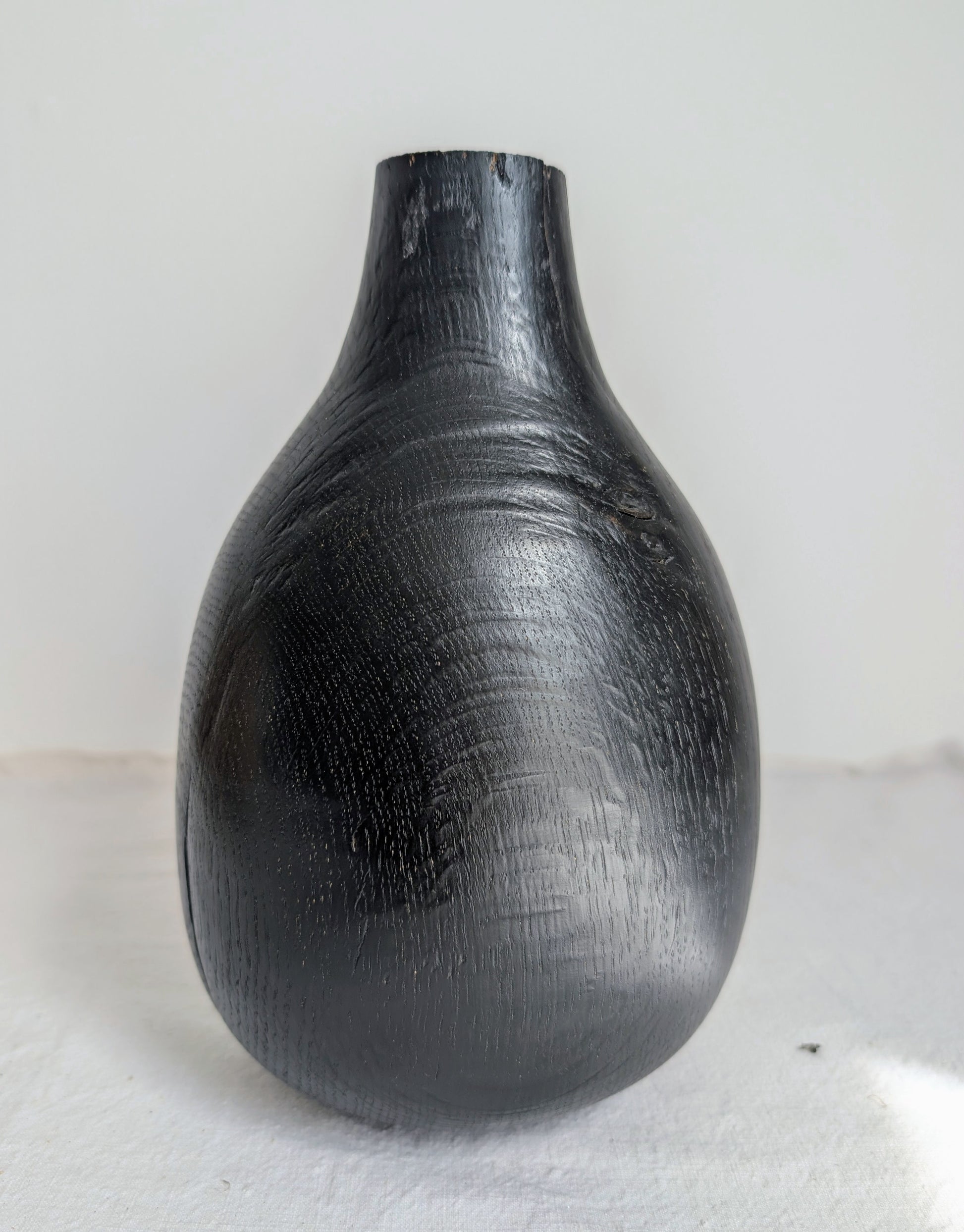 Burr Oak Vase blackened with Japanese Sumi Ink, and buffed to a shine.