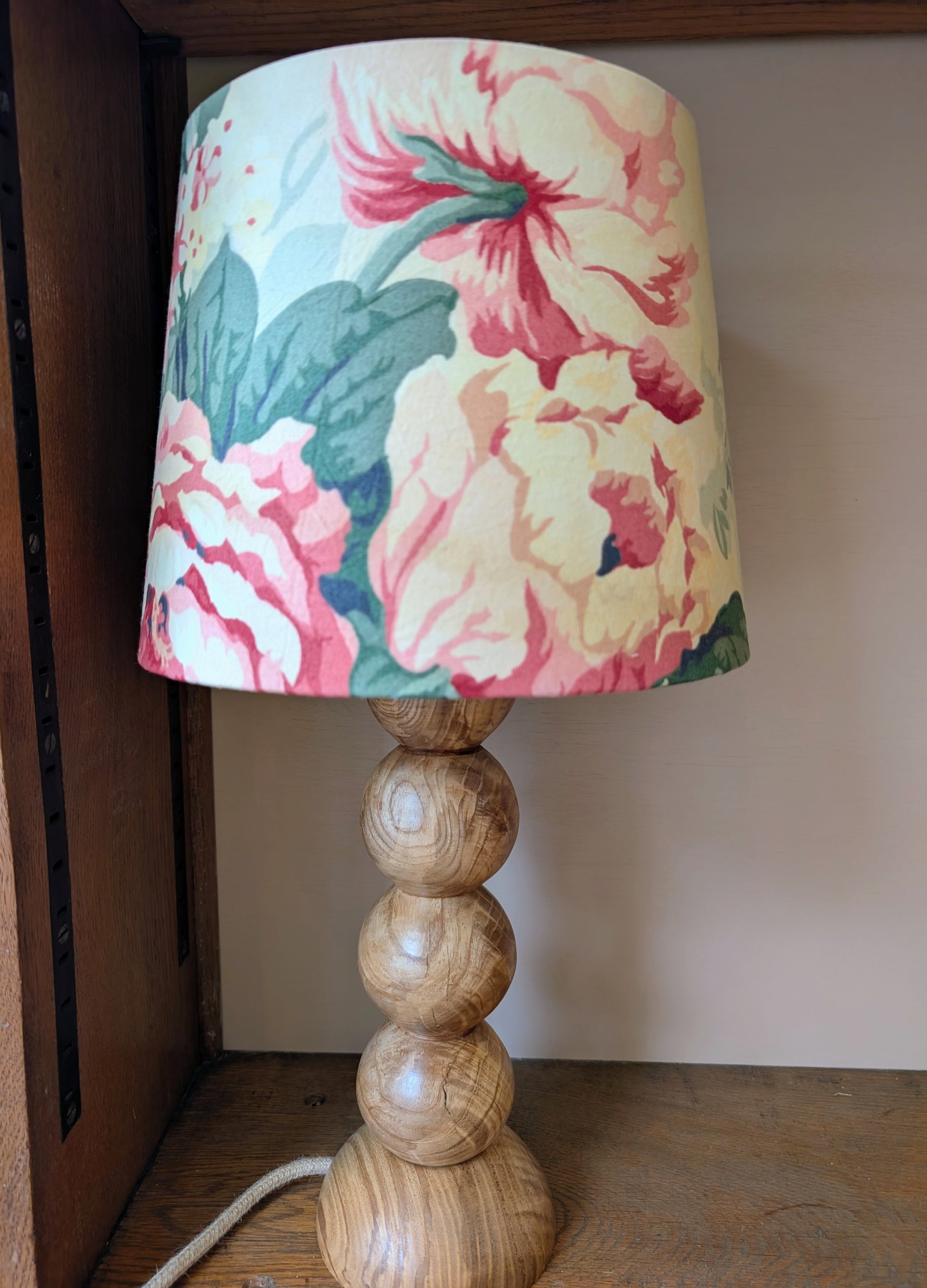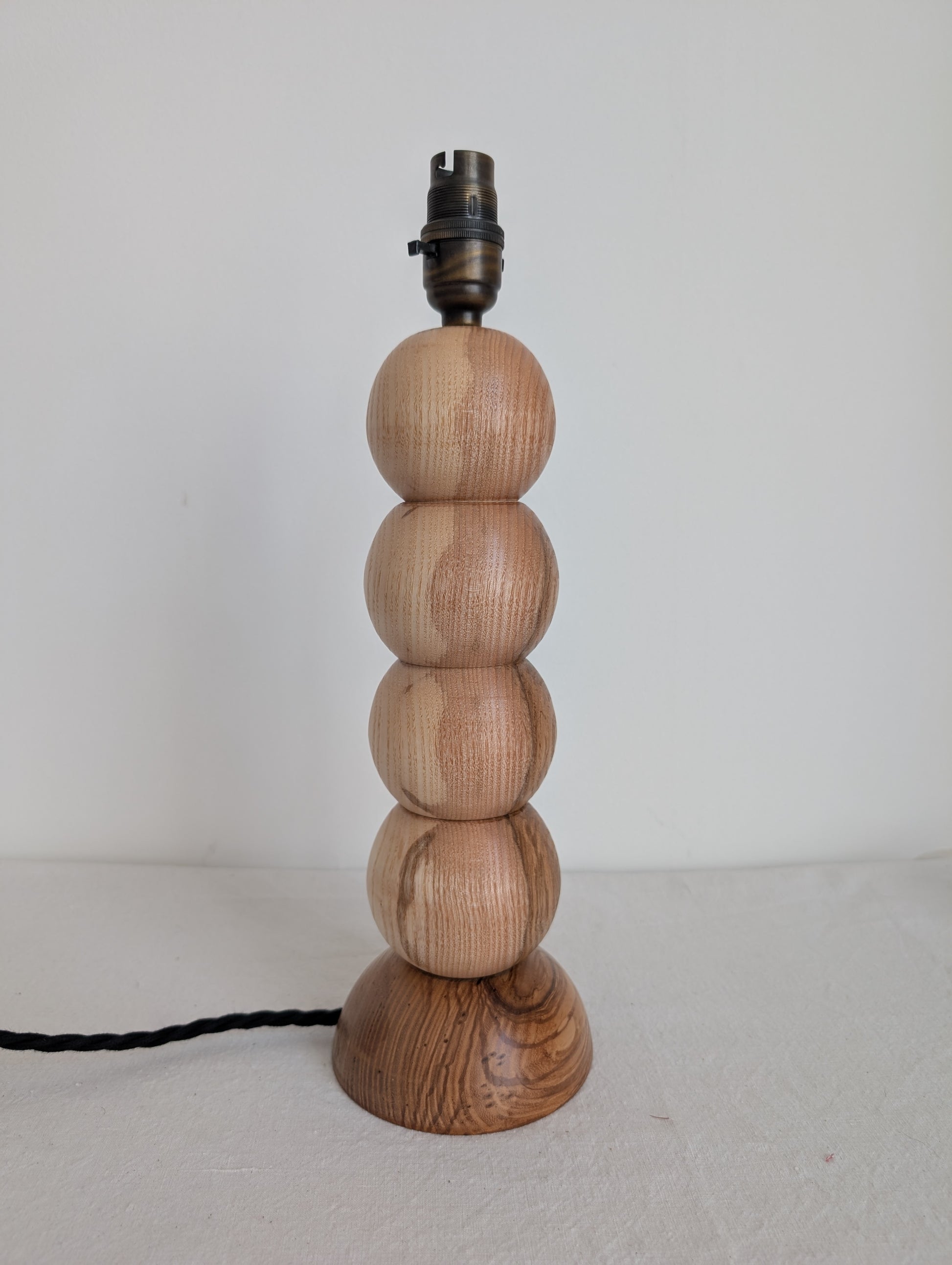 This hand crafted table lamp base celebrates the natural beauty of Sussex Ash. Hand-turned to create a column of bobbles, its unique wood grain brings warmth and character to your living space.
