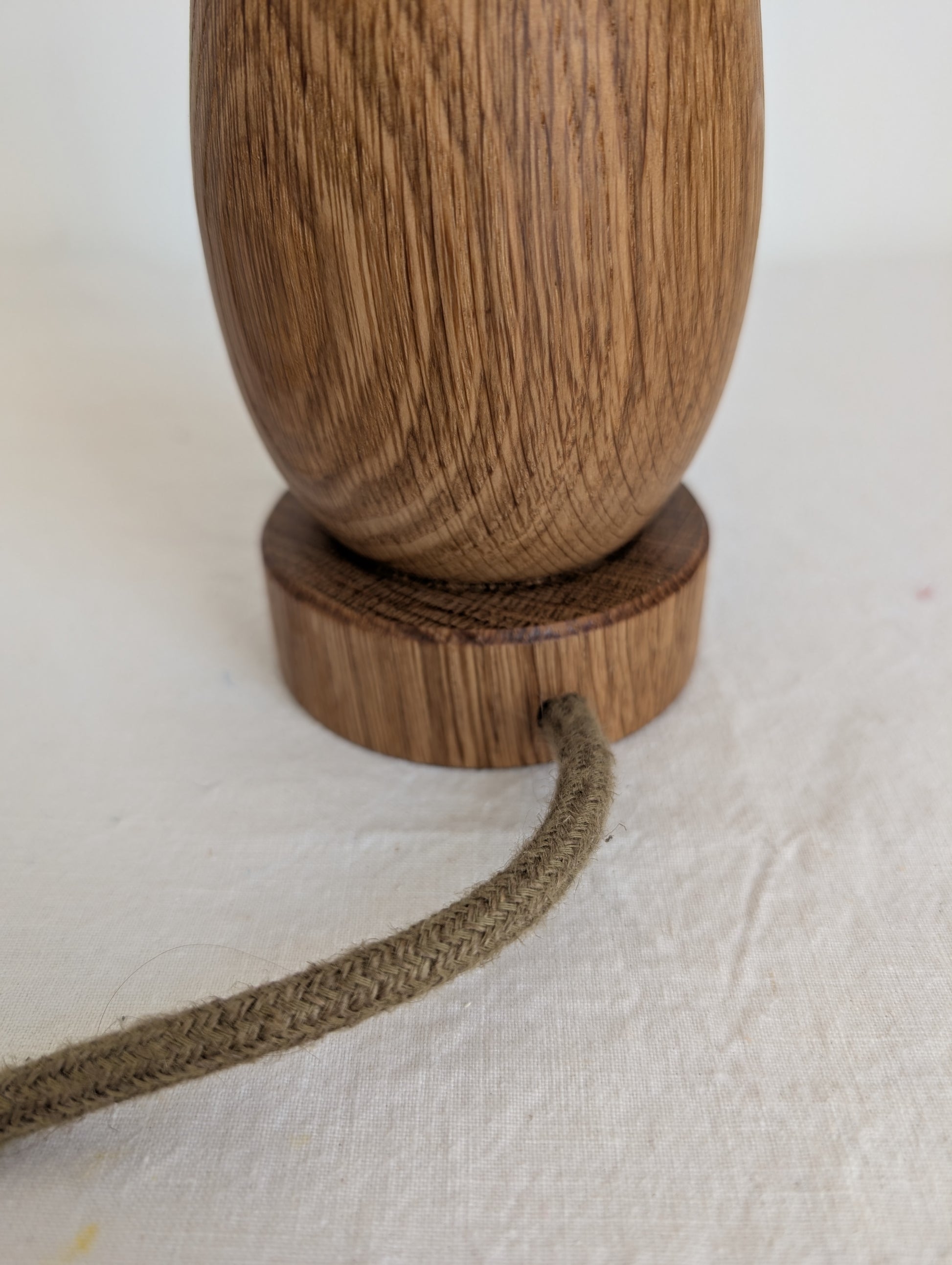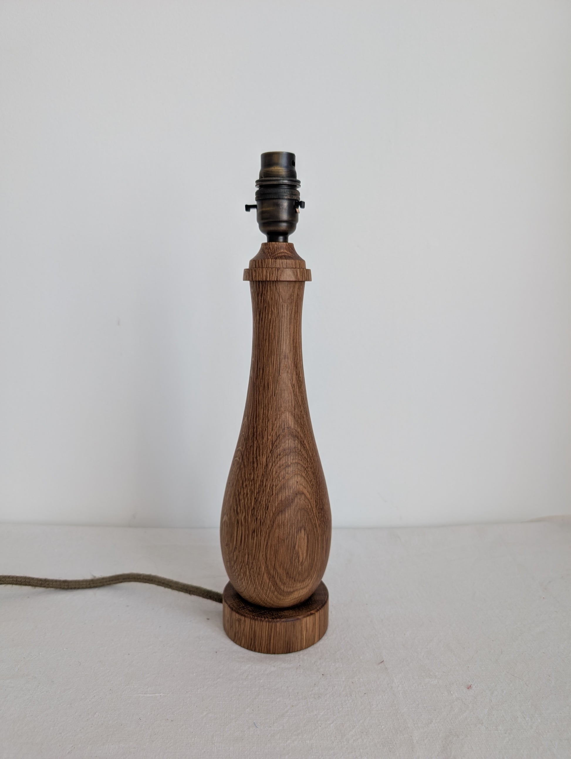 This hand crafted table lamp base celebrates the natural beauty of Oak Hand-turned to create a simple candlestick form, its unique wood grain brings warmth and character to your living space.