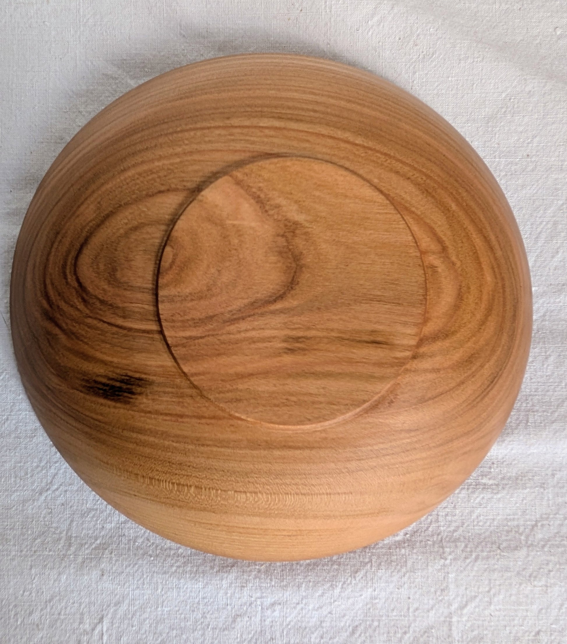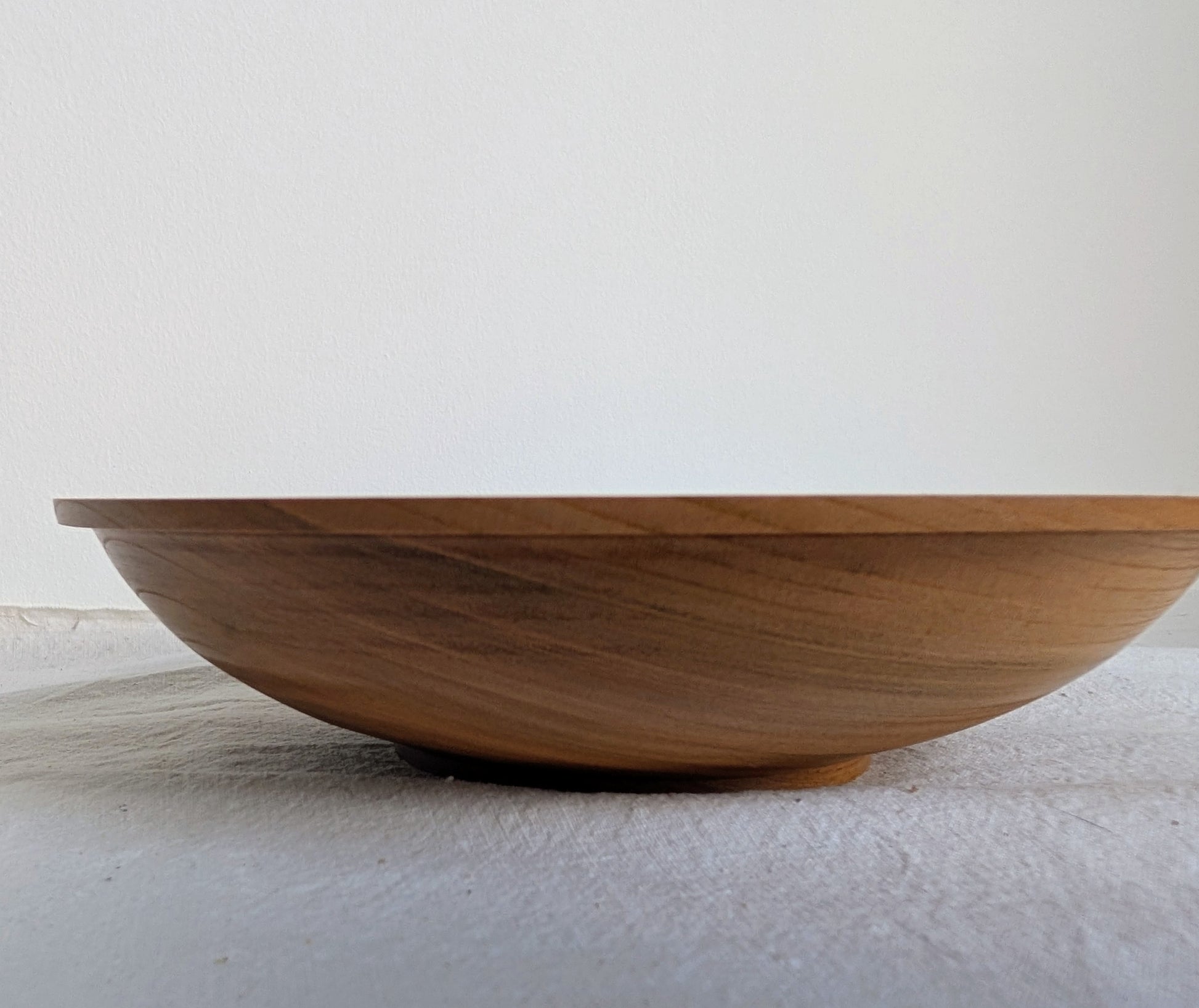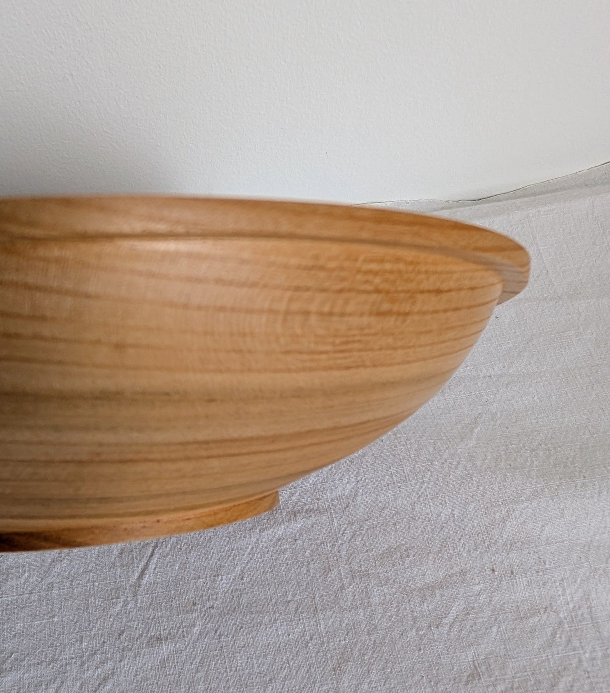 - Bowl B has a wider, flat edge, but no lip. The wood has a figure like a cross in the bowl, and a simple flat base.