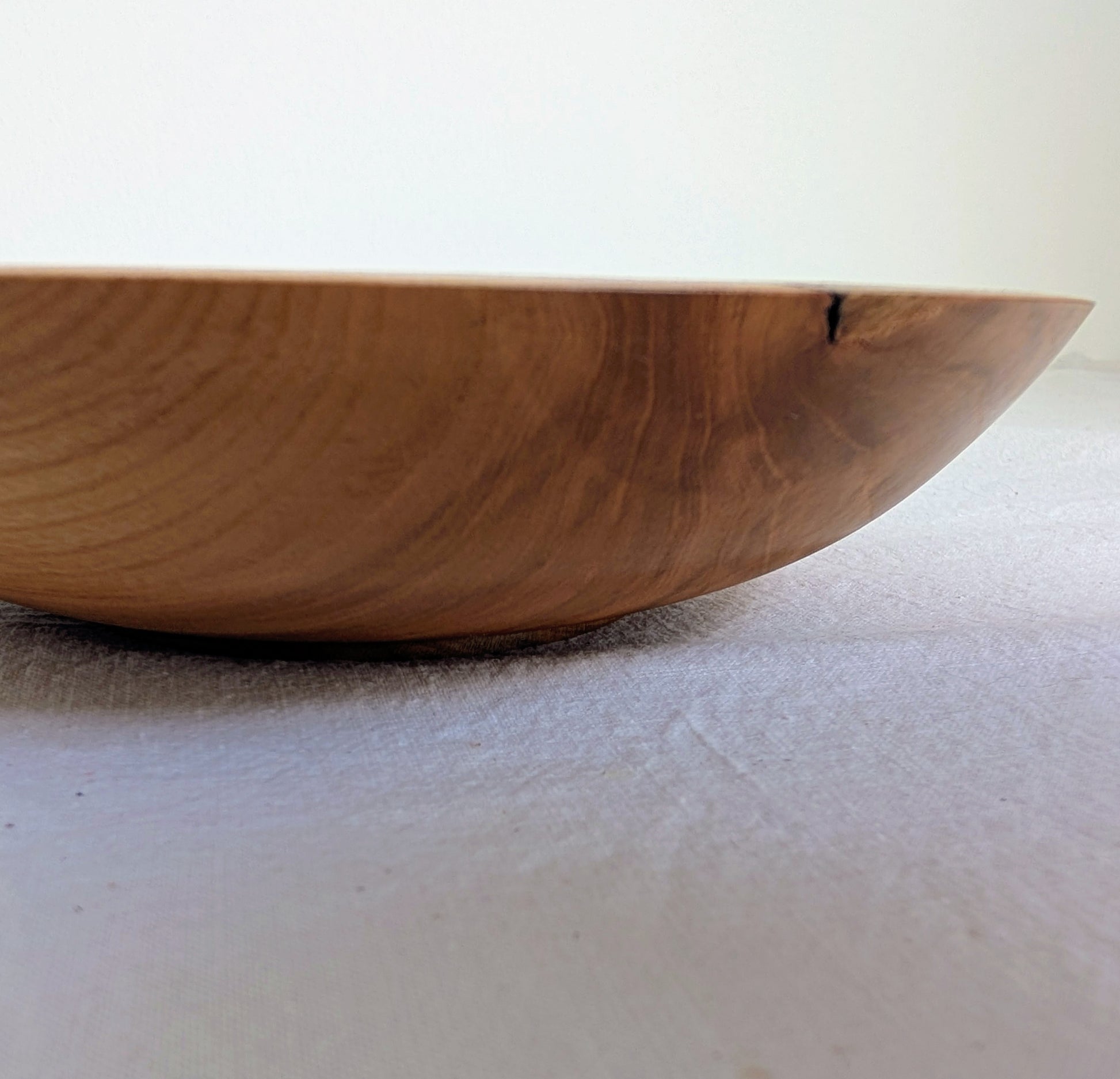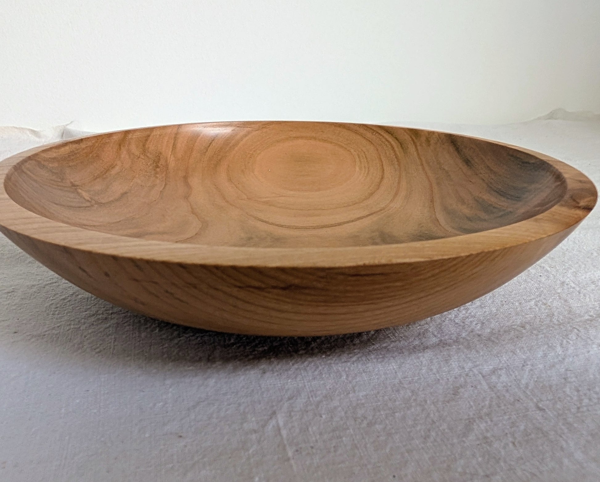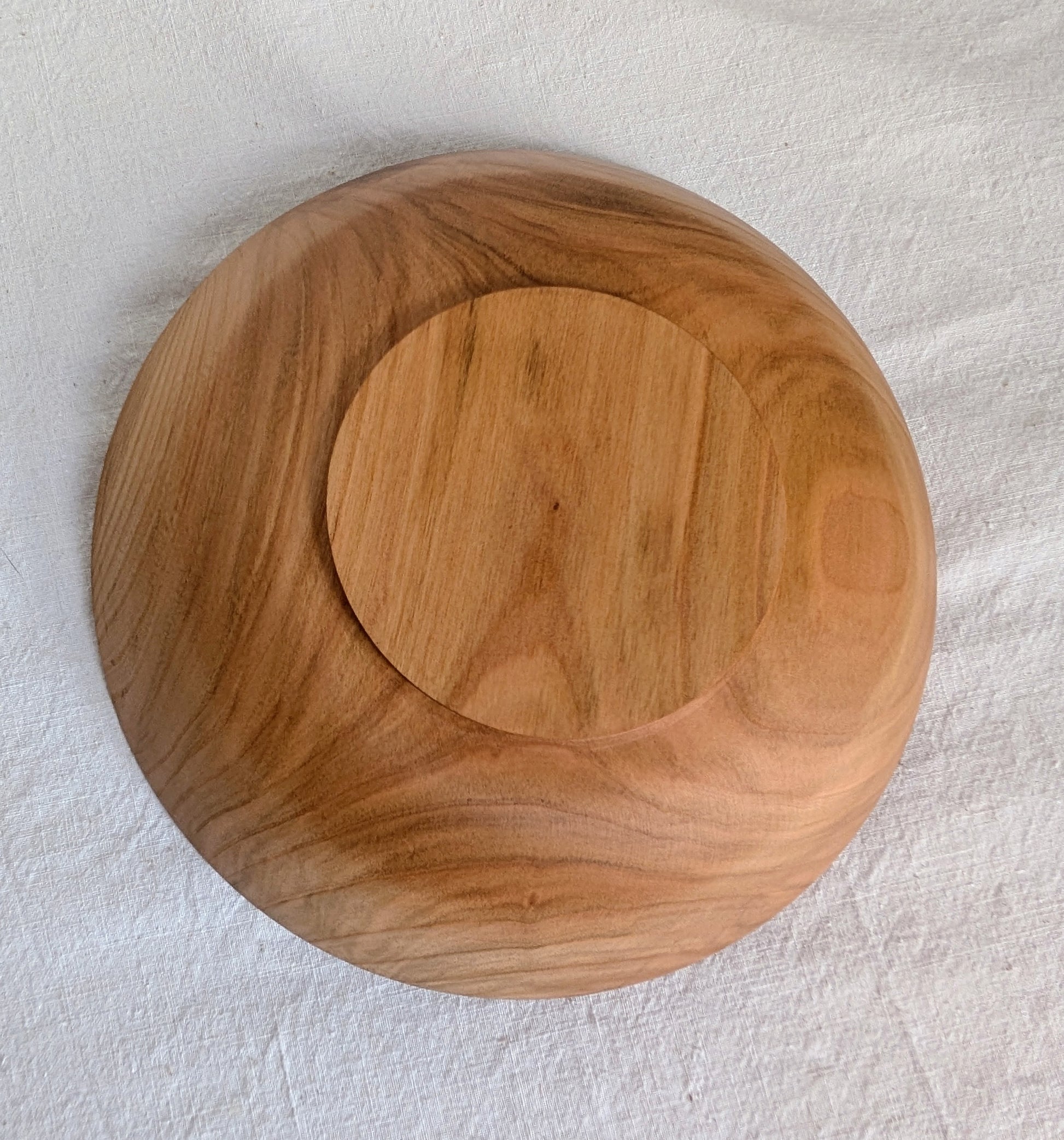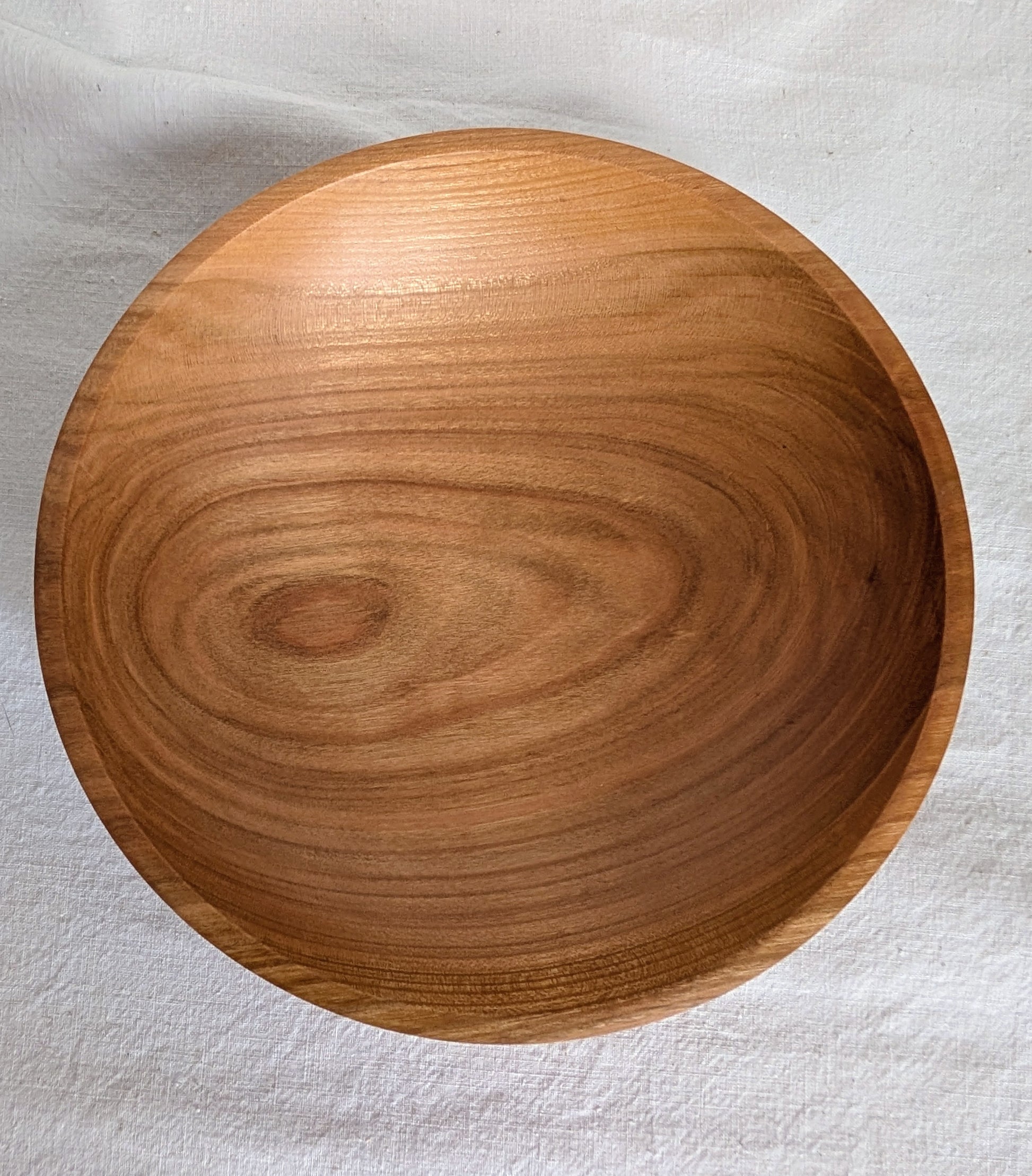 - Bowl B has a wider, flat edge, but no lip. The wood has a figure like a cross in the bowl, and a simple flat base.