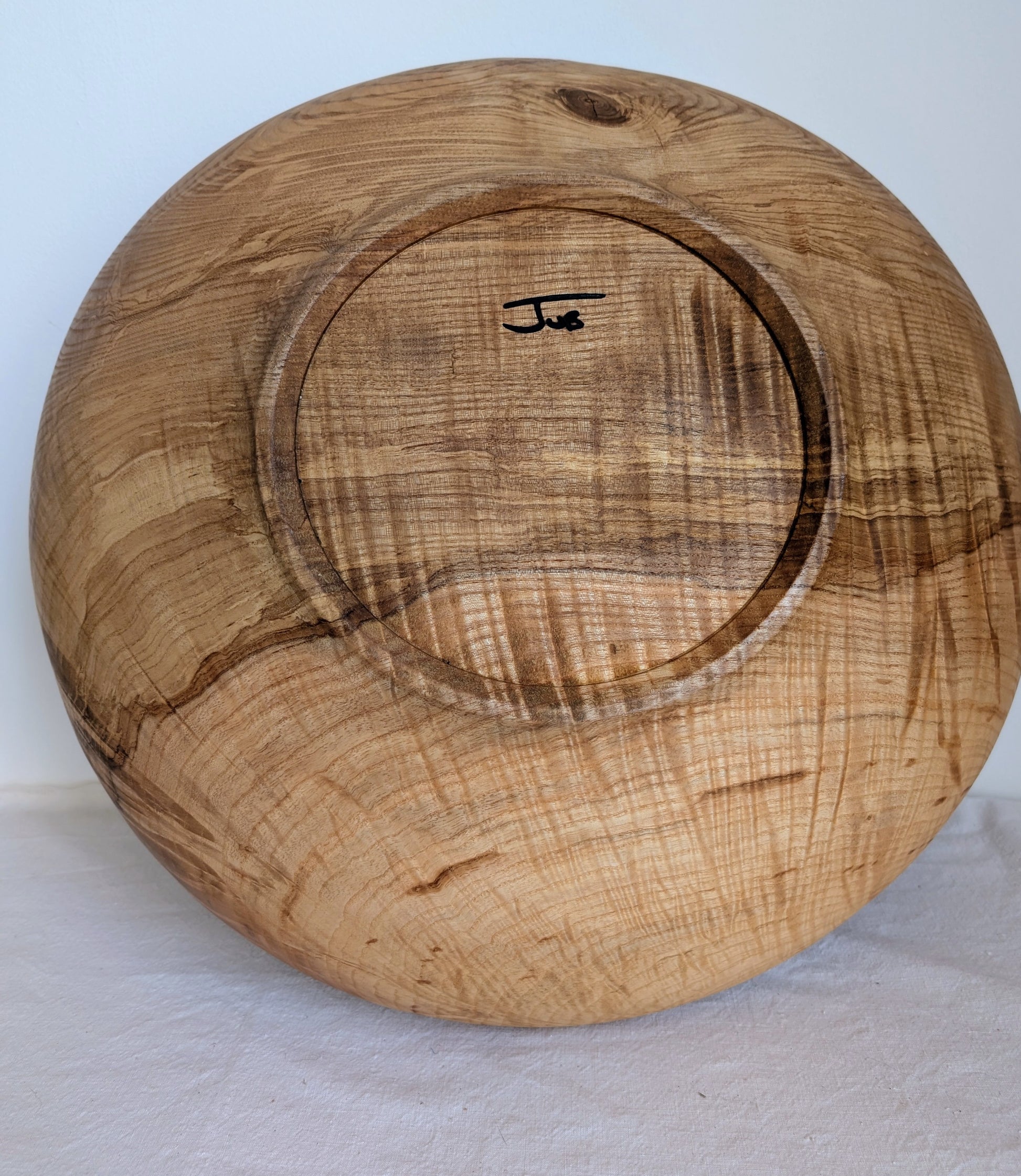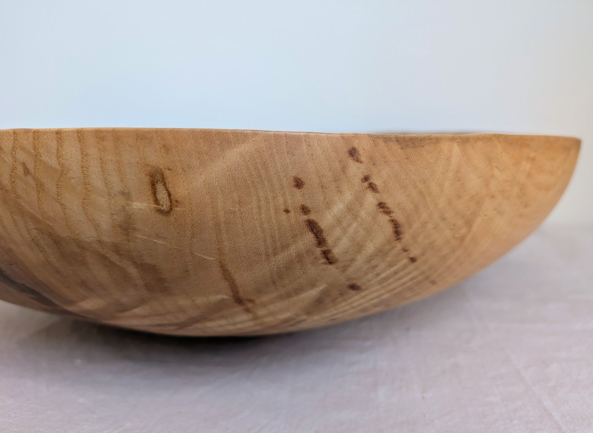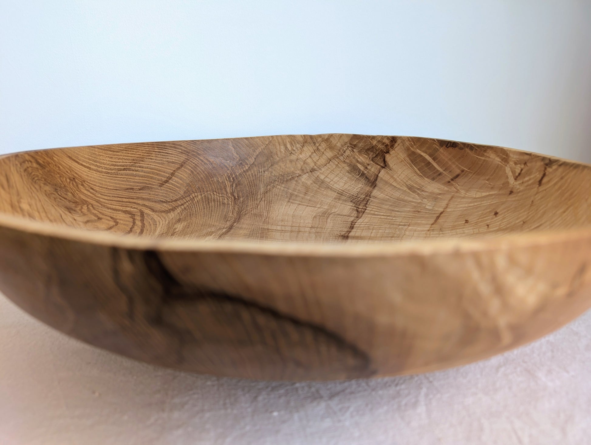 Very wide but quite shallow bowl, turned from Olive Ash. A very special bowl that would look perfect on a large kitchen island.