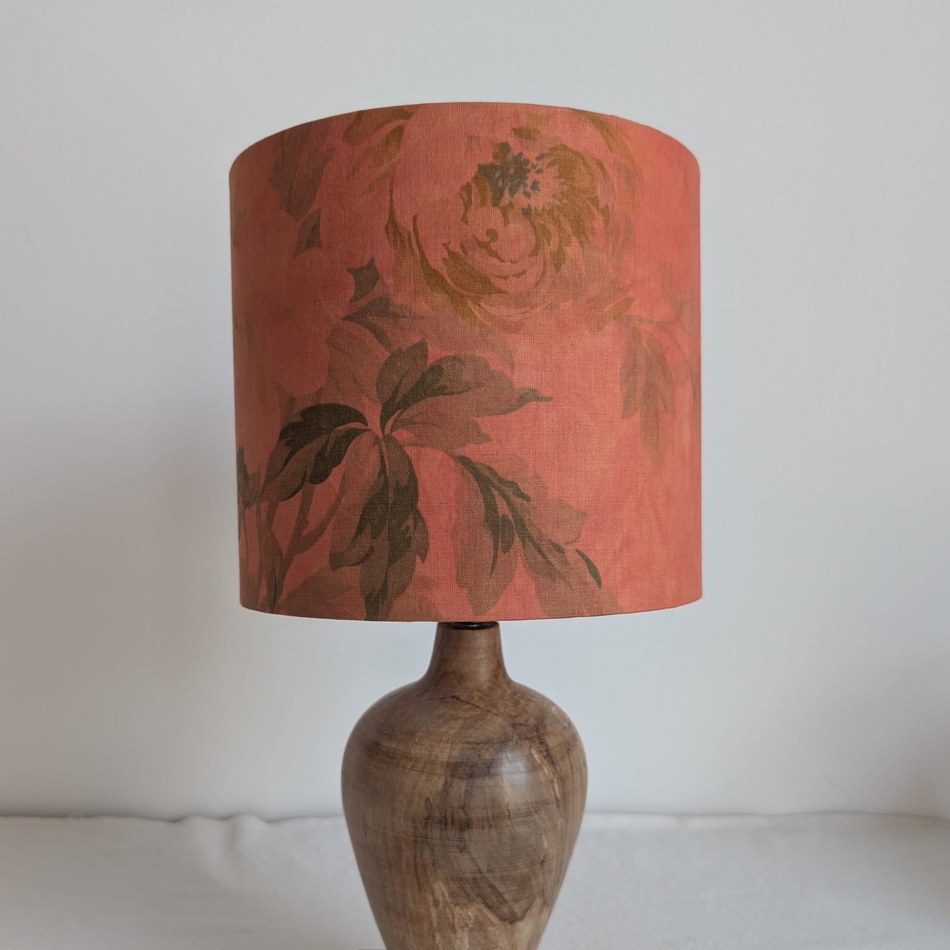 A unique 20cm drum lampshade dyed with madder root on vintage cotton fabric.