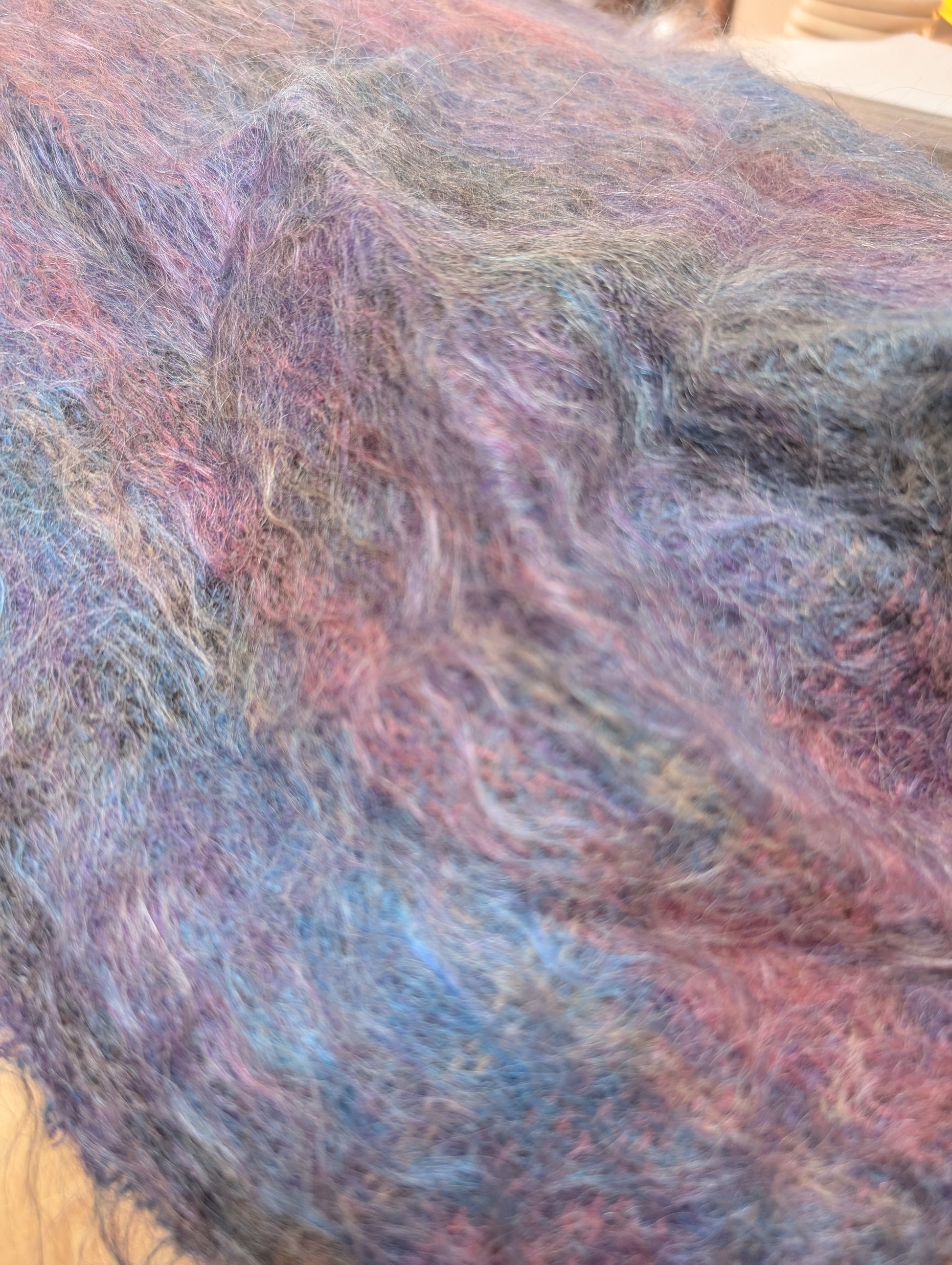 Classic vintage mohair blanket or throw in beautiful pinks and purples. Made in Scotland by "Glentana".