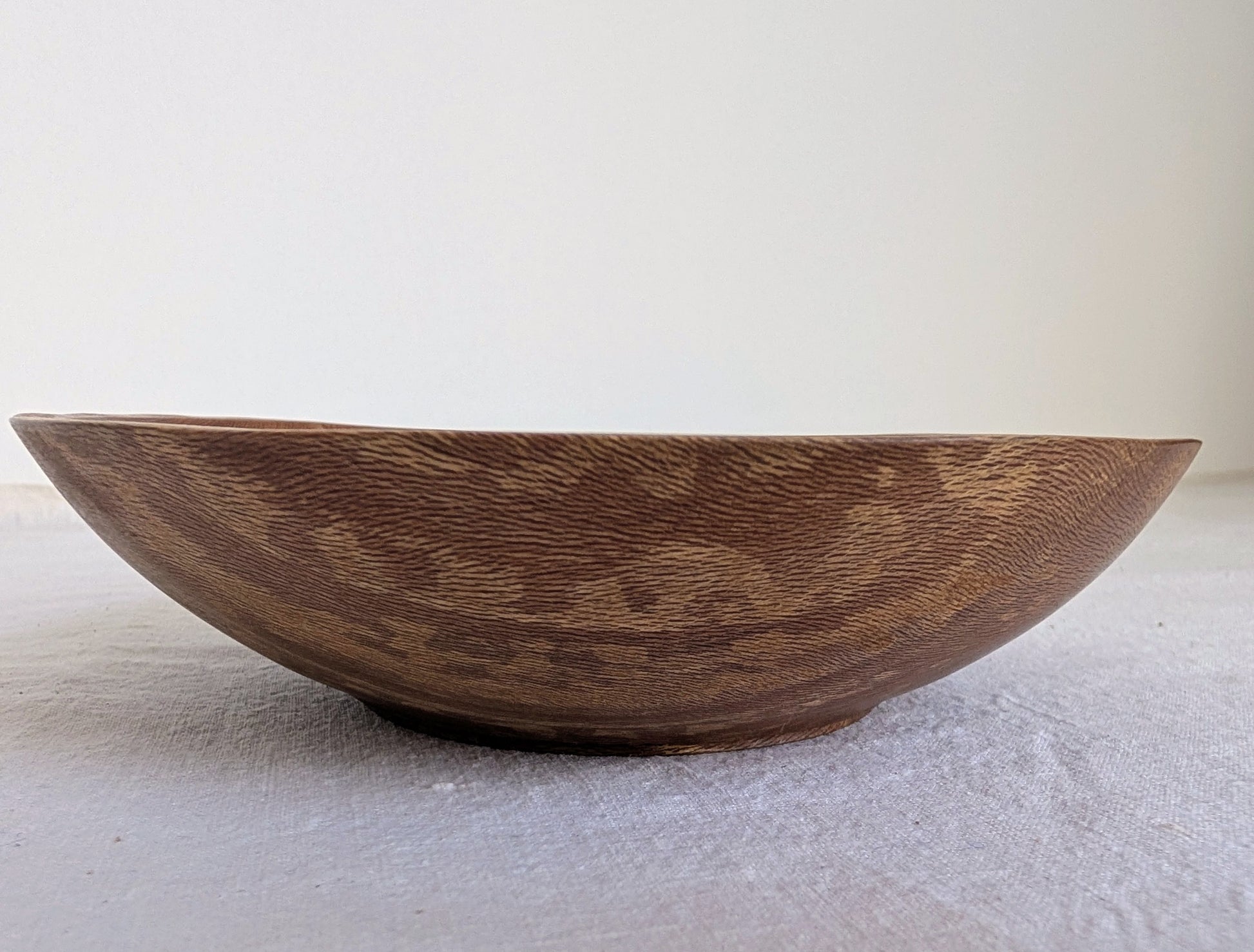 A small wooden bowl, handturned from London Plane by Jubal Prevatte.