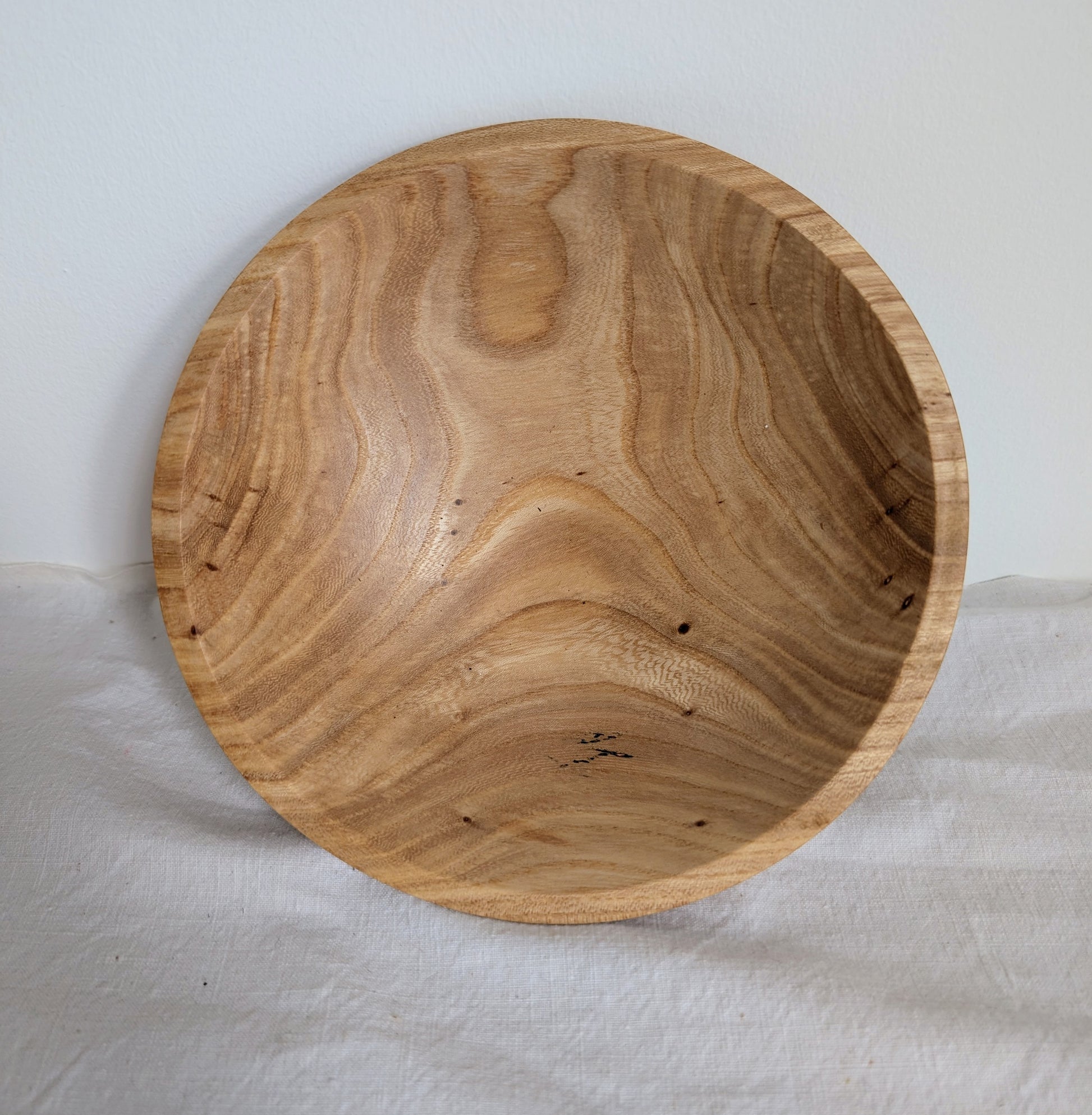 A small wooden bowl, handturned from a Worthing Ash tree by Jubal Prevatte.