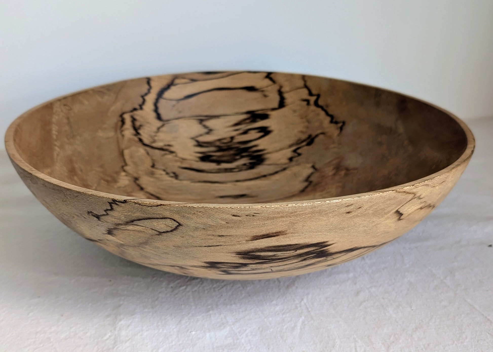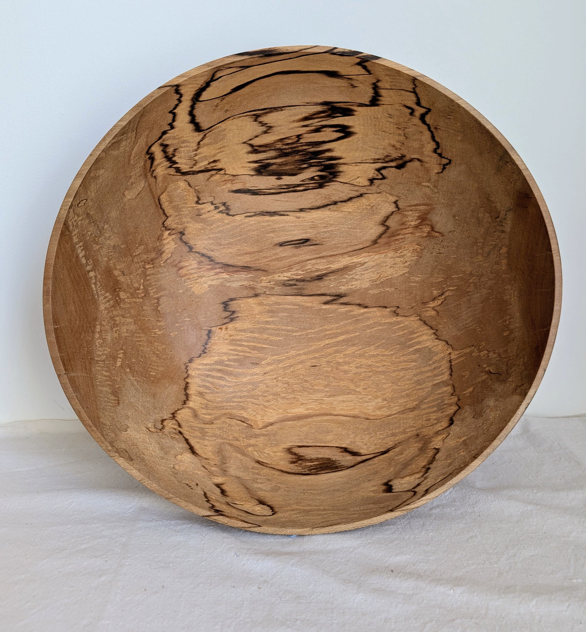 Large salad bowl turned from spalted field maple wood.