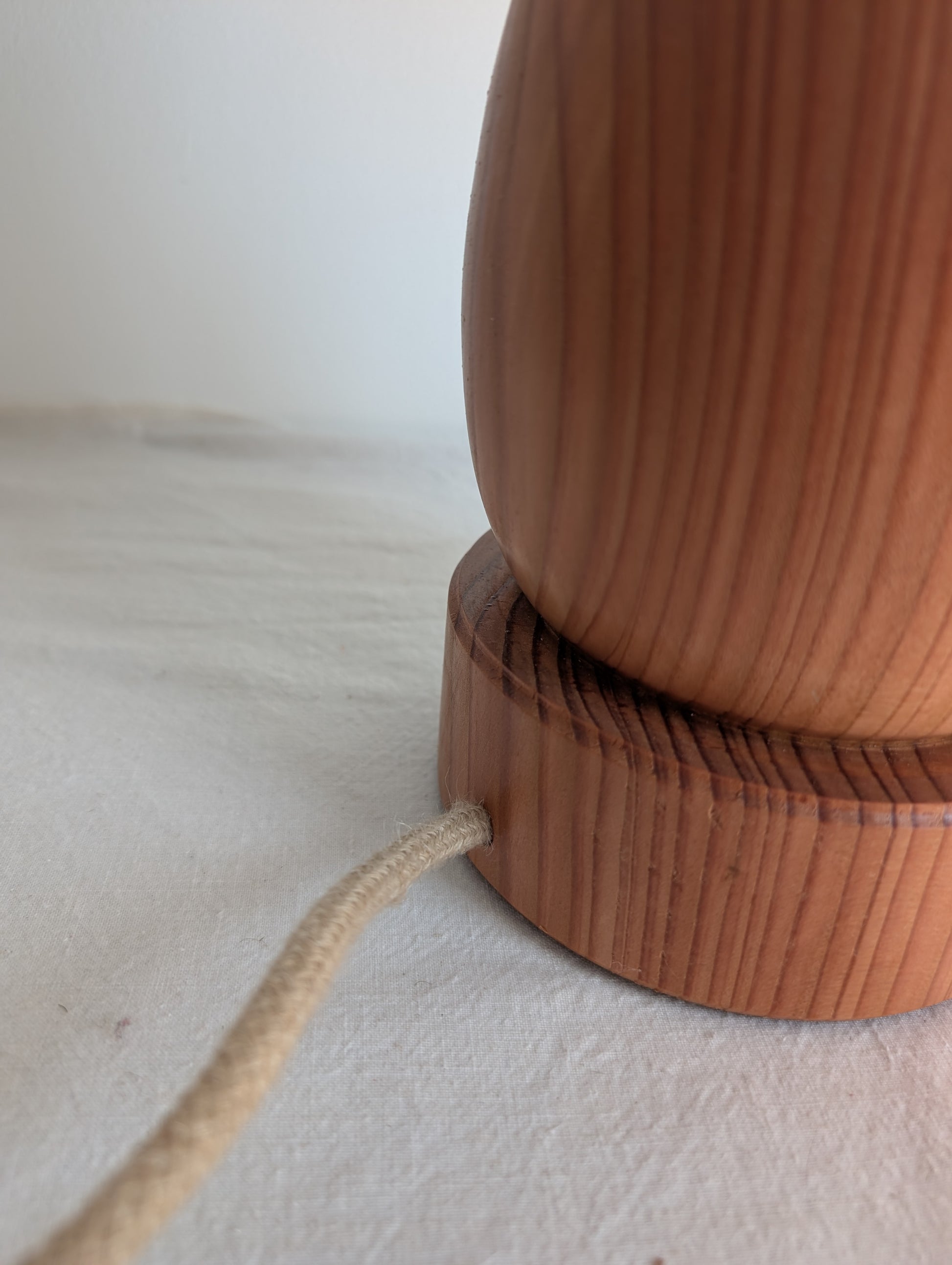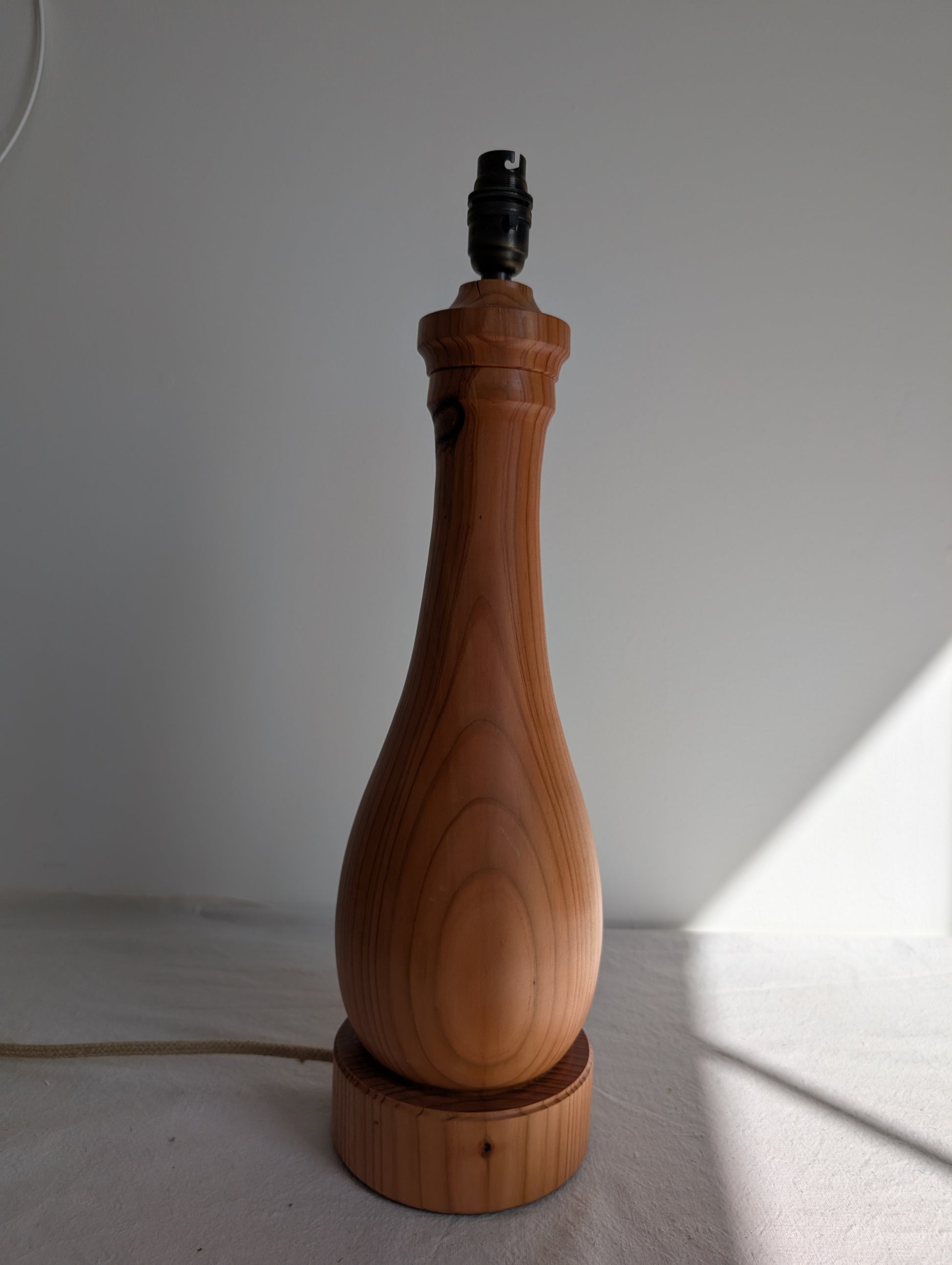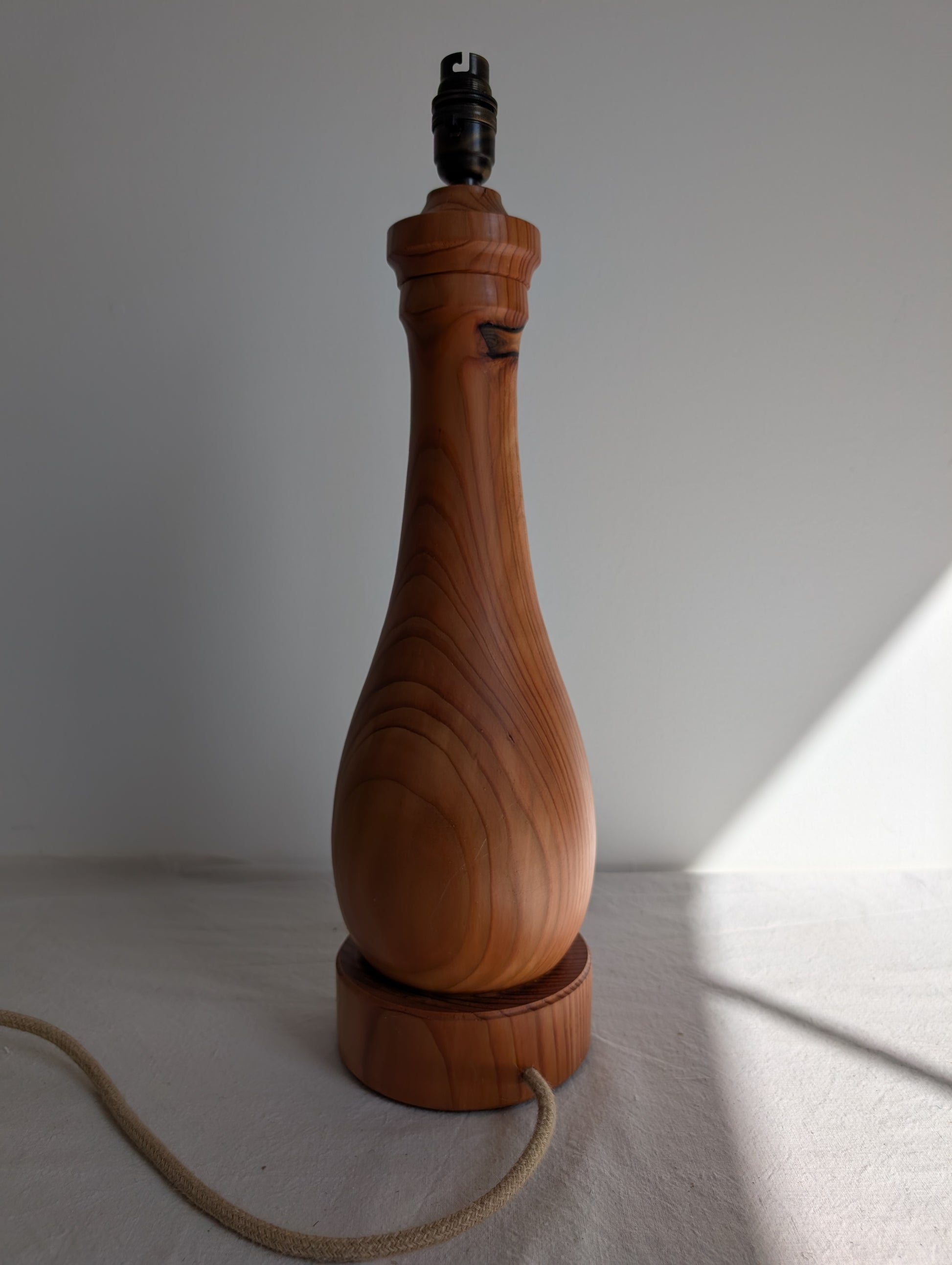 This hand crafted table lamp base celebrates the natural beauty of Douglas Fir wood. Hand-turned to create a large and striking candlestick form, its unique wood grain brings warmth and character to your living space.
