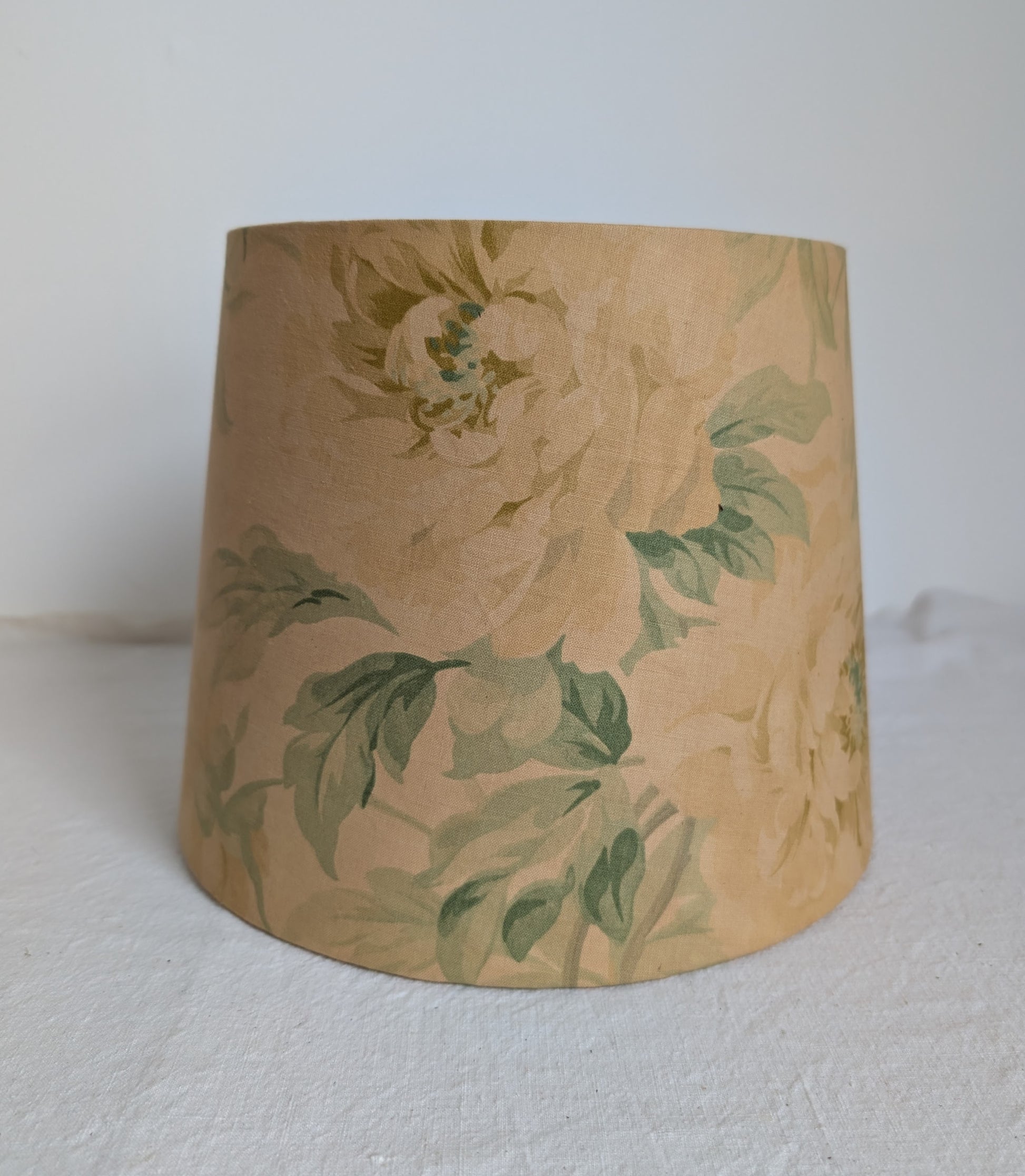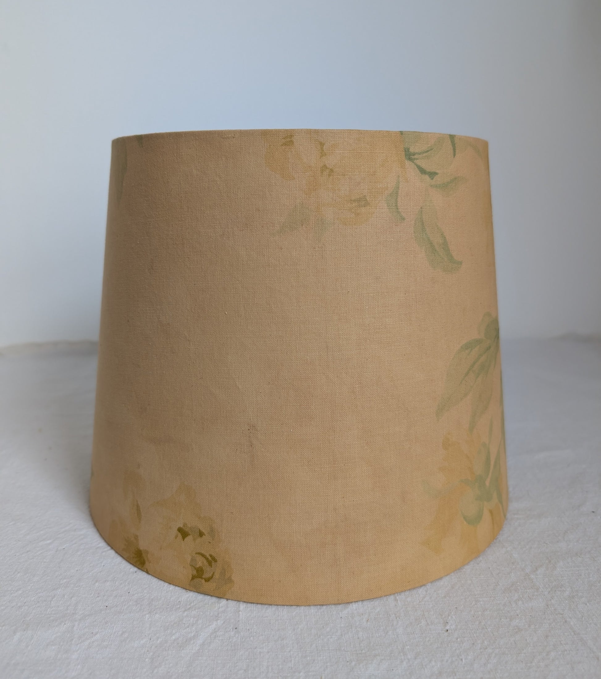 A unique 25cm empire lampshade dyed with rhubarb root on vintage cotton fabric.