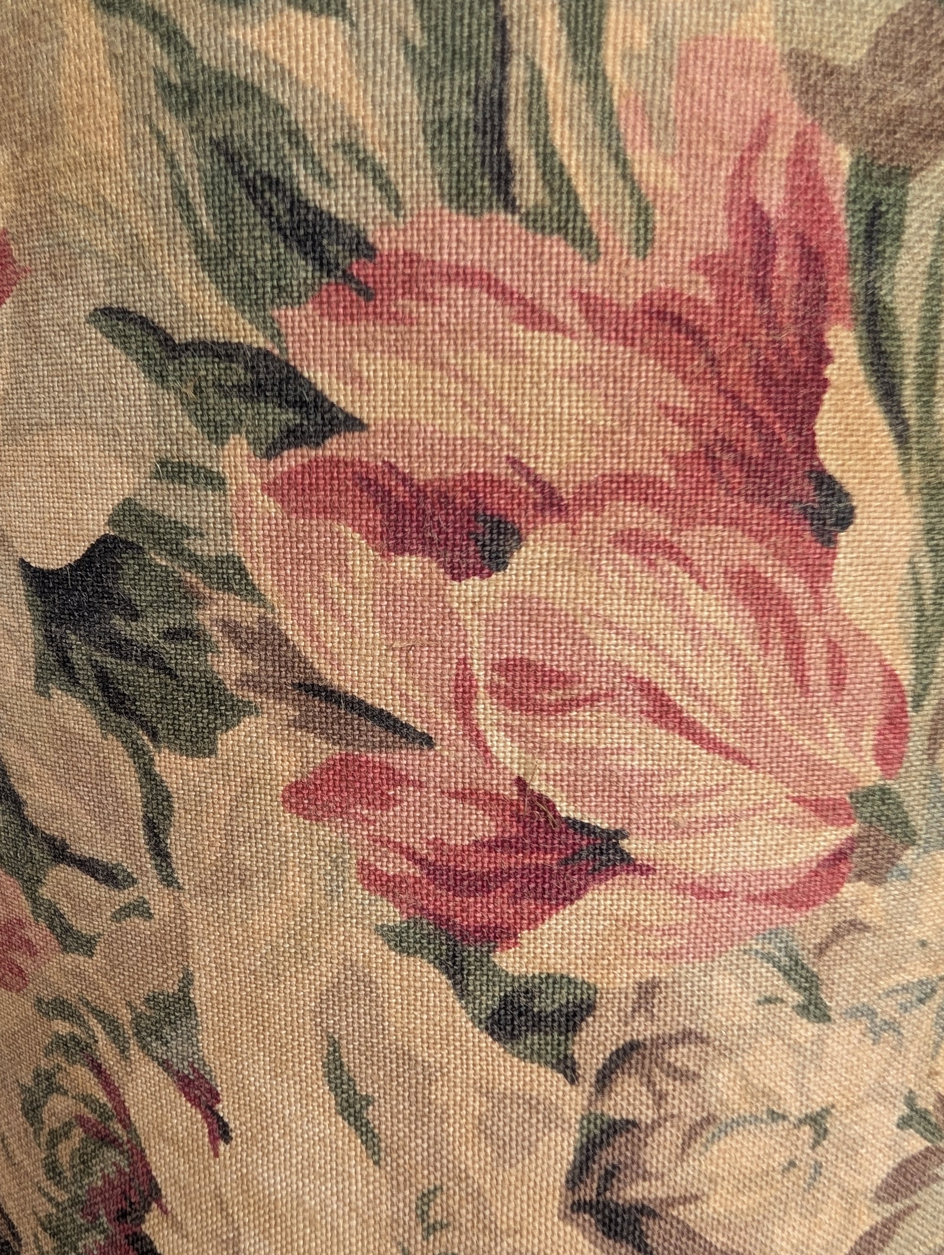 A unique 20cm drum lampshade dyed with dried pomegranate on vintage cotton fabric.